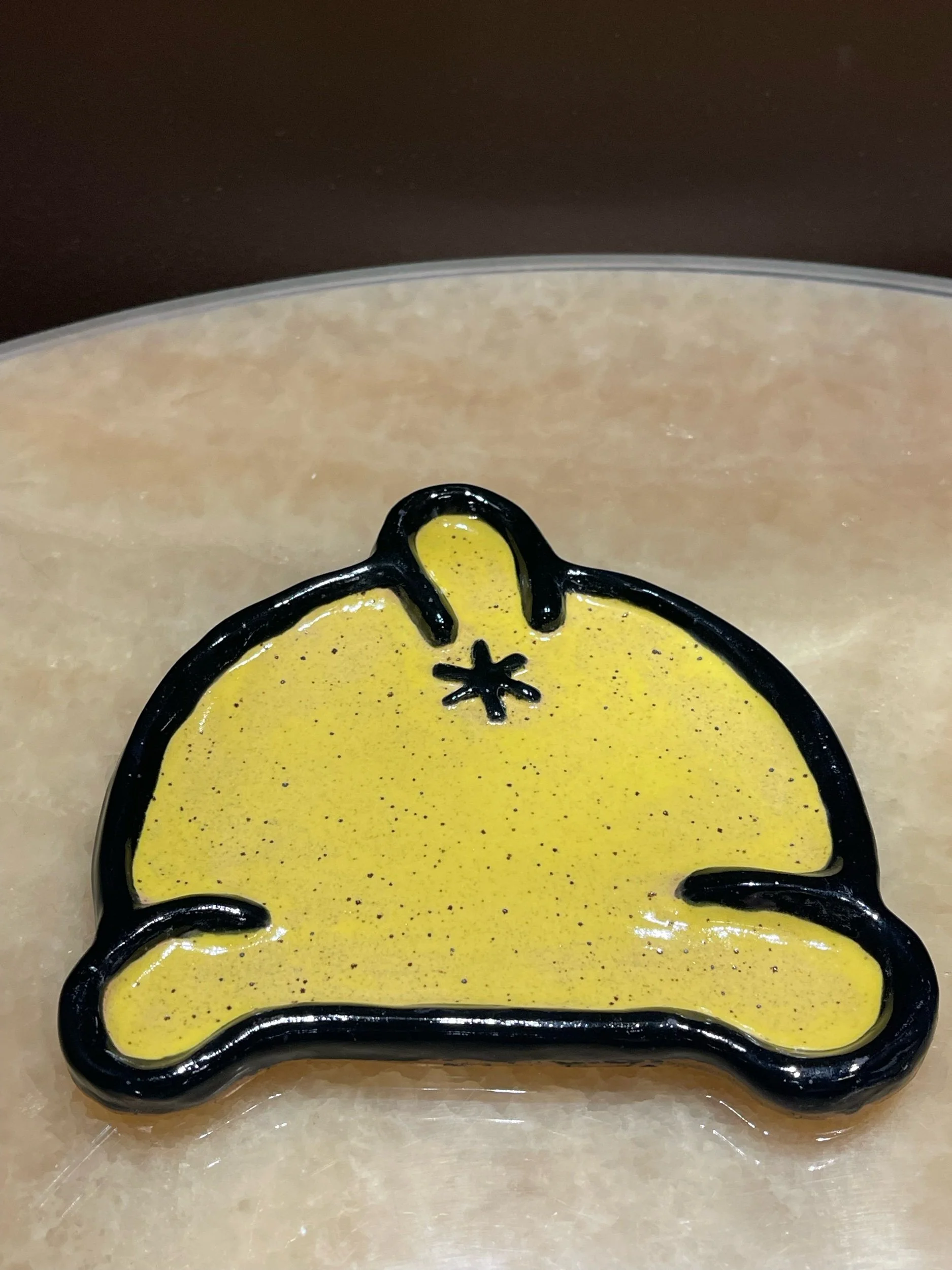 Pompompurrin from Sanrio. You can use it as a soap rest, coaster, or just for display purposes. Hand carved and mould casted in plaster of Paris. Glaze coloured.